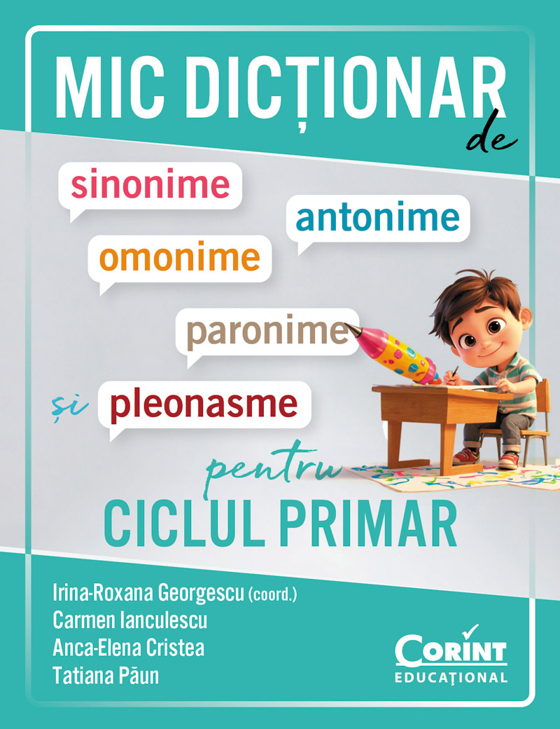 Acest Mic dicționar de sinonime, antonime, omonime, paronime și pleonasme pentru ciclul primar este o lucrare necesară în biblioteca oricărui elev din cel puțin două motive: surprinde o sinteză relevantă a termenilor pentru universul de cunoaștere al copiilor din clasele …