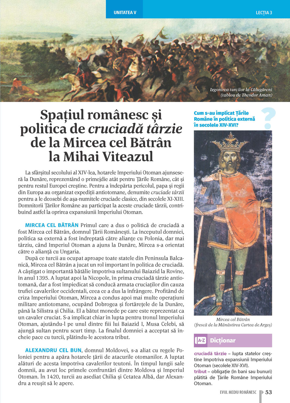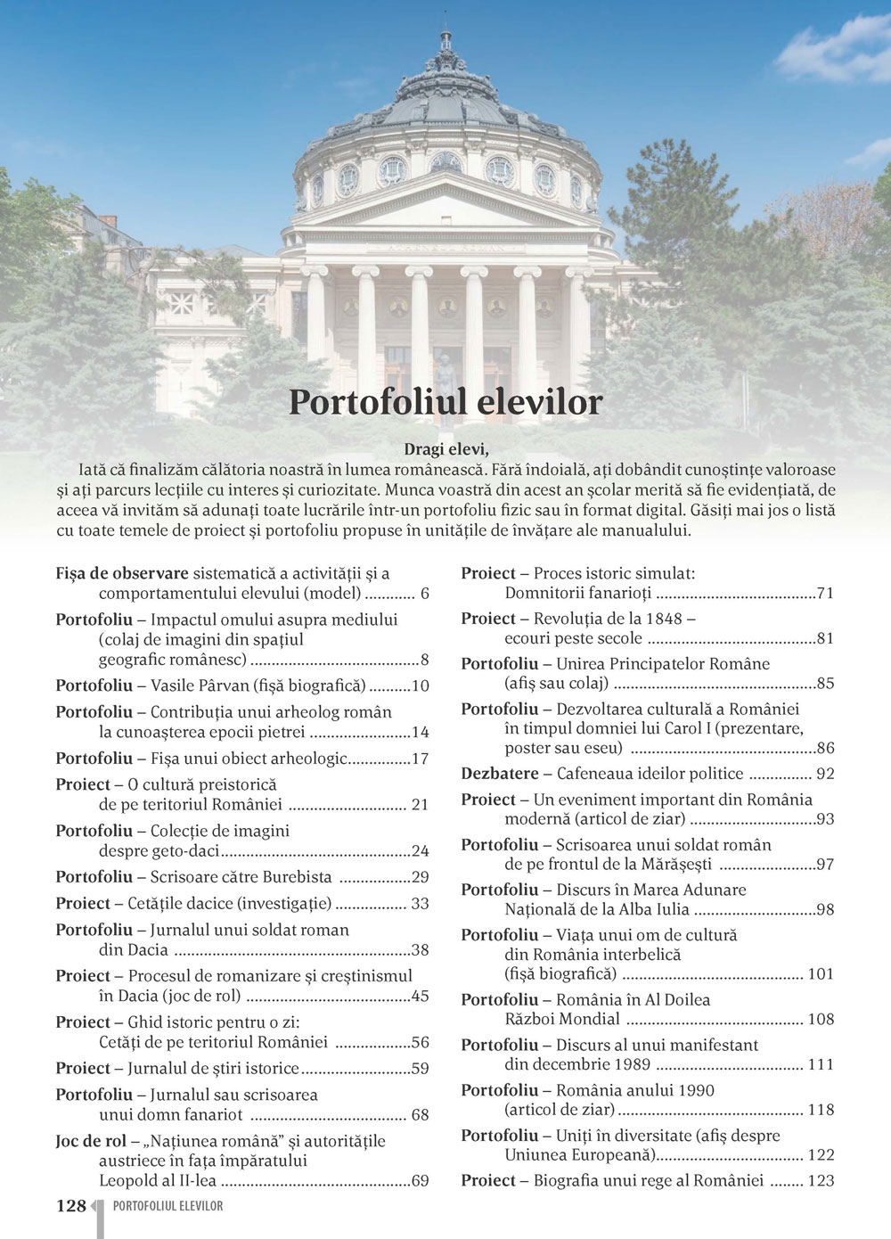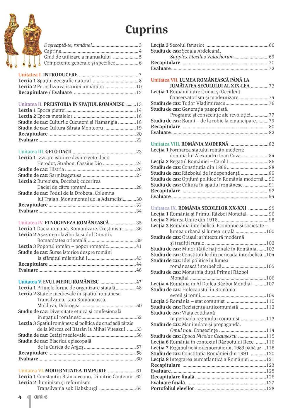 afișează cuprinsul manualului și îți permite accesarea oricărei lecții printr-un salt direct;