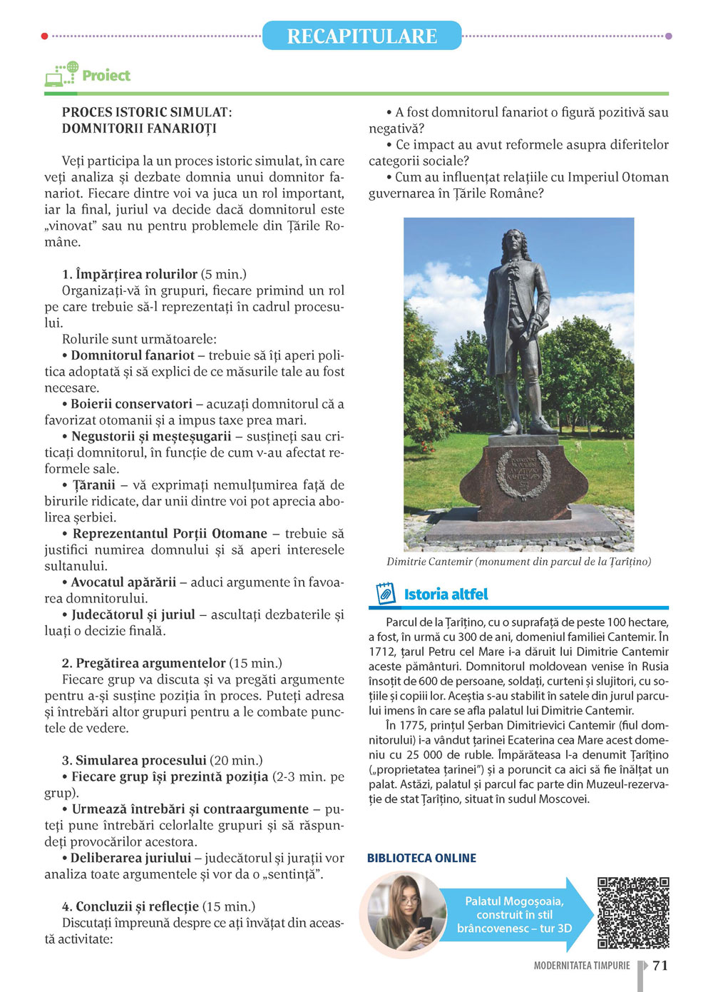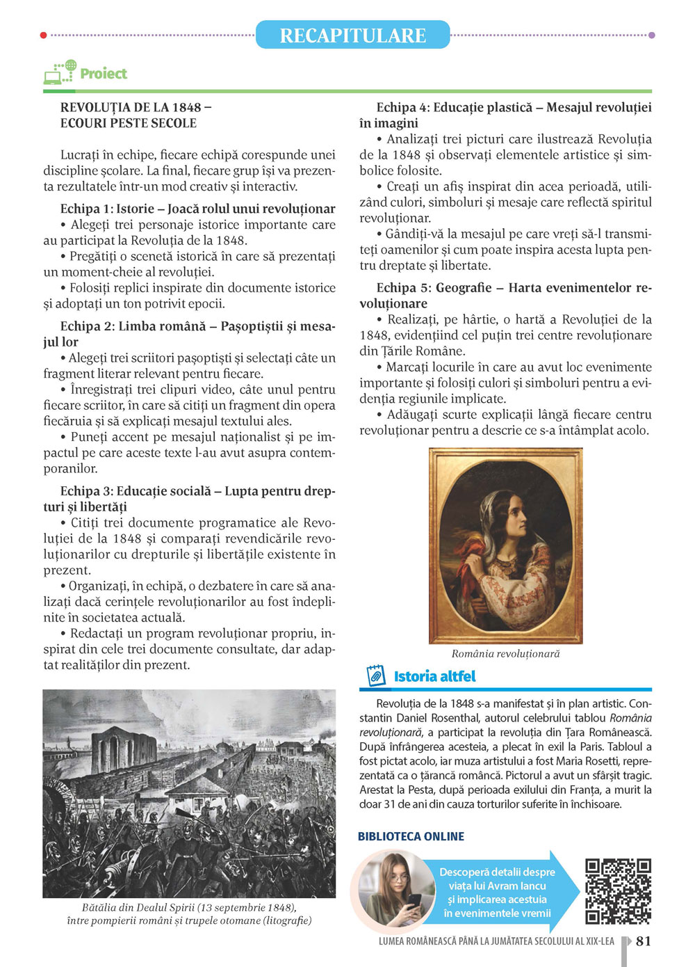 Toate activitățile multimedia au câte un buton X care permite revenirea la pagina curentă a manualului.